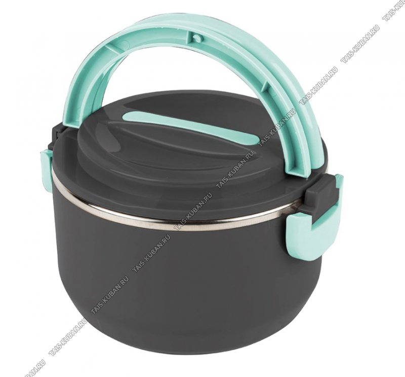 нержавеющая сталь+пластик,крышка на 2х защелках,складные ручки 2шт,цвет черный/бирюзовый,подарочная упаковка,Mallony