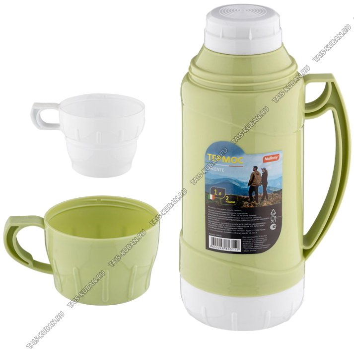 Термос "Valente" 1,0л крышка-чашка 2шт,салатовый/белый,ручка,п/у (12)