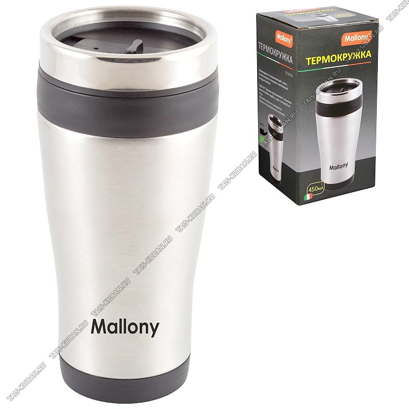 Термокружка (нерж) 0,45л "Mallony/Felicita" серебро/черн.силикон.встав,пласт.крыш,п/у (12)
