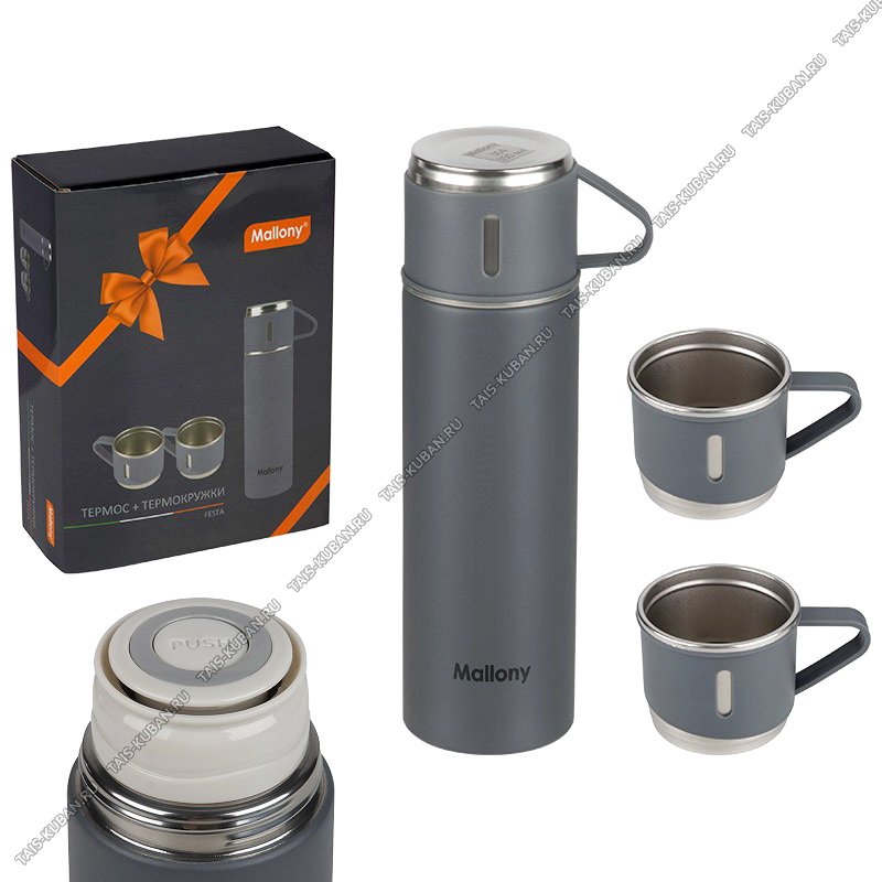 Набор "Festa" Термос 0,5л +термокружка 3шт по 0,15л,пробка-кнопка,подарочная упаковка,Mallony