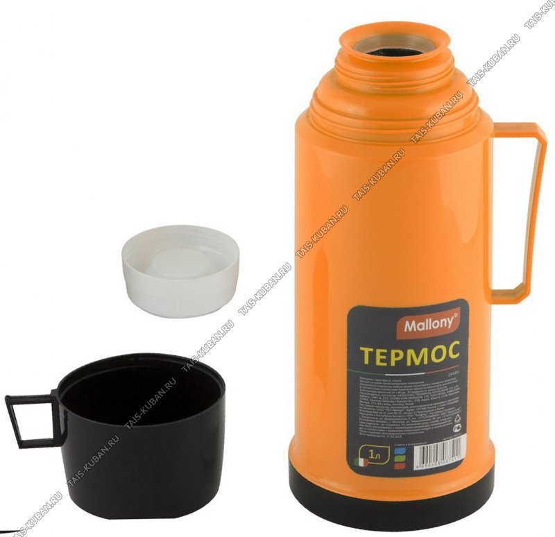 Термос 1,0л крышка-чашка,оранжевый (12)