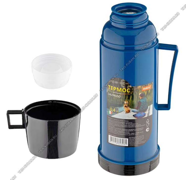 Термос "Coloroso" 0,4л крышка-чашка,син/черн,руч,п/у (12)