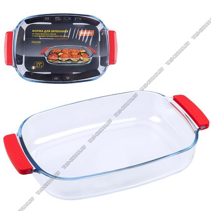 Форма для запекания, прямоугольная 2,7л с силиконовыми накладками-прихватками на ручках (35х22 h6см)