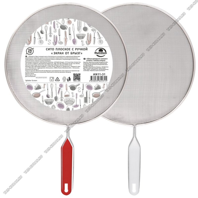 Экран от брызг d26см, ручка L12,5 см,хром.сетка+пласт (12)