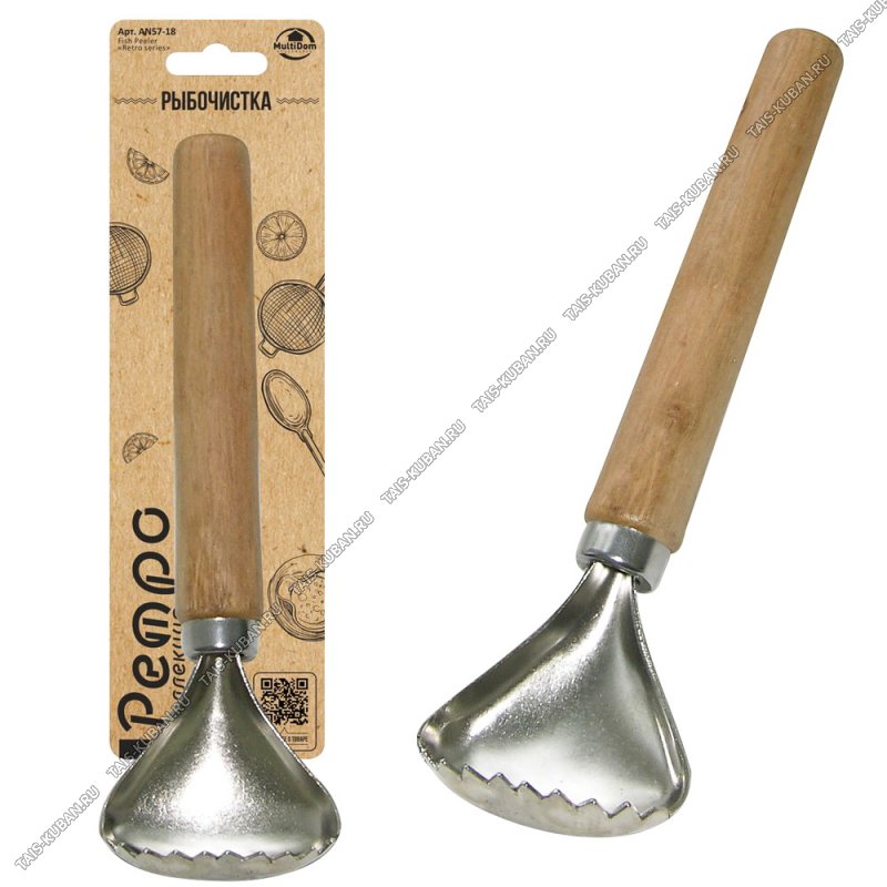 Рыбочистка L21см, ф."ложечки" металл,дерев.руч. "Ретро" (12)