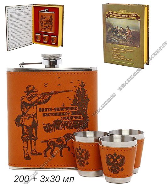 (Фляжка 200мл и 3стопки 30мл) металл, уп/книга