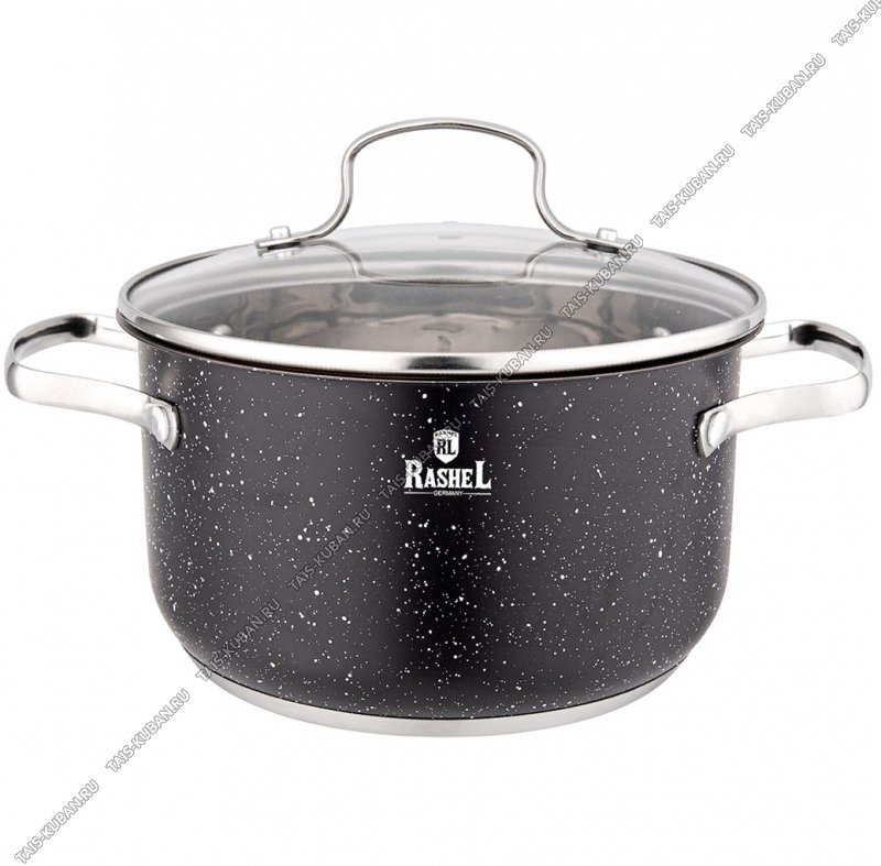 форма цилиндр,индукционное капсульное дно,ручки-скобы цельные металлические,стеклянная крышка ручка-скоба,матовый корпус с антипригарным покрытием,подарочная упаковка,Rashel