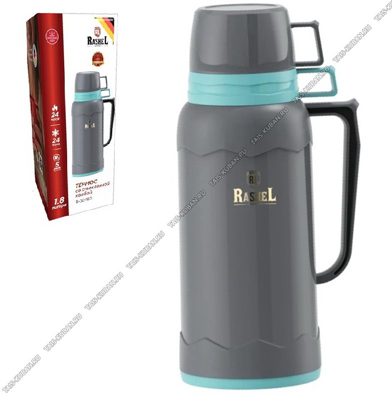 Термос (стеклянная колба) "Зиг-заг" 1,8л ,серый/бирюза,п/у (12)
