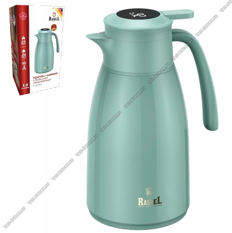 Термос-кувшин (стекло) "Комфорт" 1,6л с датчиком t,зелёный (12)