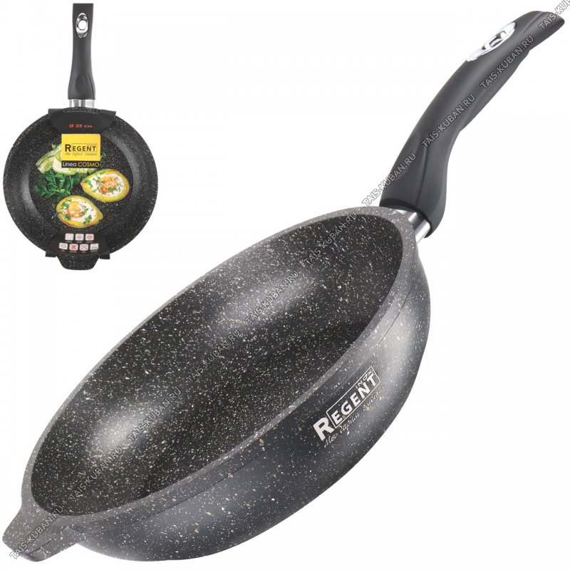черный с бело-золотой крапинкой,прямой борт h5,5см,толщина стенки/дна 3,8/4,5мм,дополнительное "ушко",бакелитовая ручка с силиконовым напылением,литой алюминий