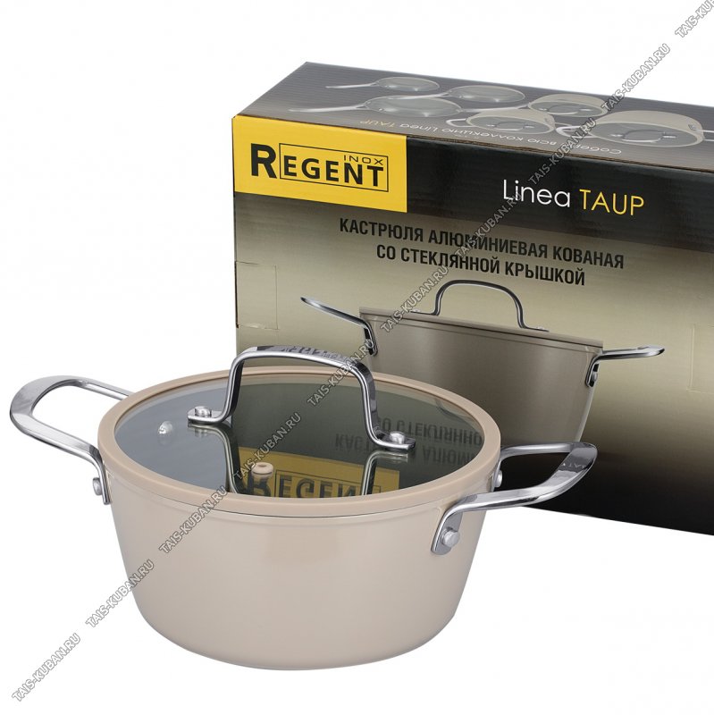 цвет капучино/серый,стеклянная крышка с силиконовым ободом,ручка-скоба нержавеющая сталь,толщина стенки/дна 2,3/2,5мм,уиленное 2-х слойное покрытие Yunsun,ручки нержавеющая сталь,кованый алюминий,подарочная упаковка,Regent