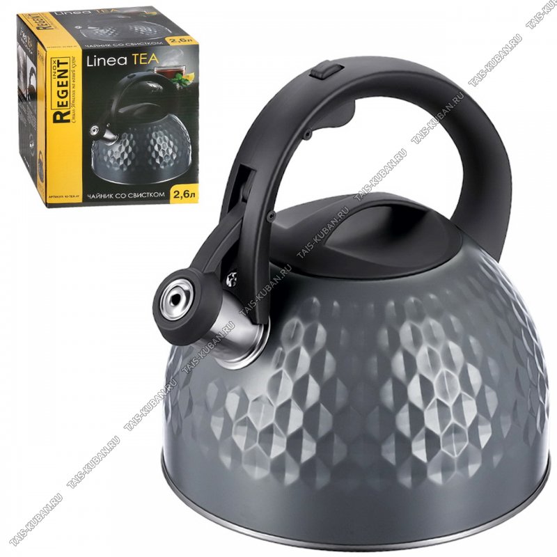 Чайник нерж 2,6л графит,свист,индукц.капсул.дно,рельефн."соты",ручка бакел.черн.с кнопк.д/открыван,матов,п/у (6)