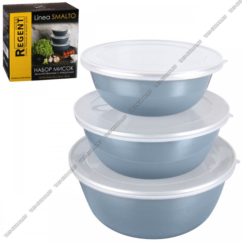 Набор мисок с пластиковой крышкой Набор мисок с пластиковой крышкой "Smalto" (0,6/0,9/1,4л d14/16/18см) (24)