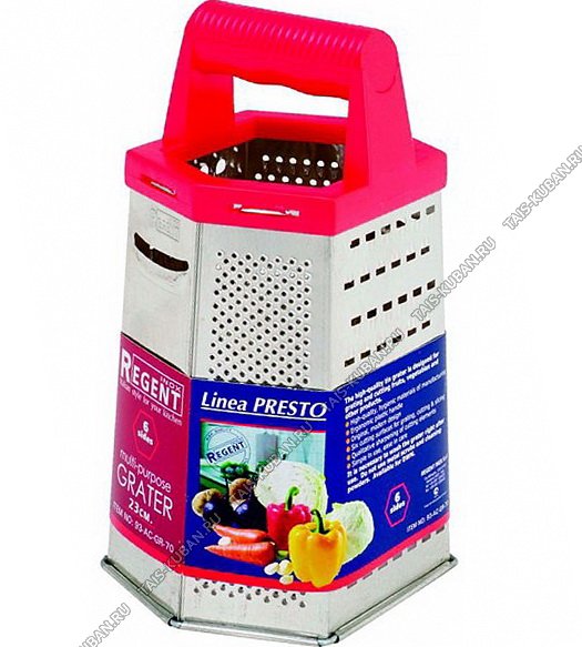 Терка 6-ти гран, h23см,нерж.сталь,пласт.ручк,красн (12) Терка 6-ти гран, h23см,нерж.сталь,пласт.ручк,красн (12)