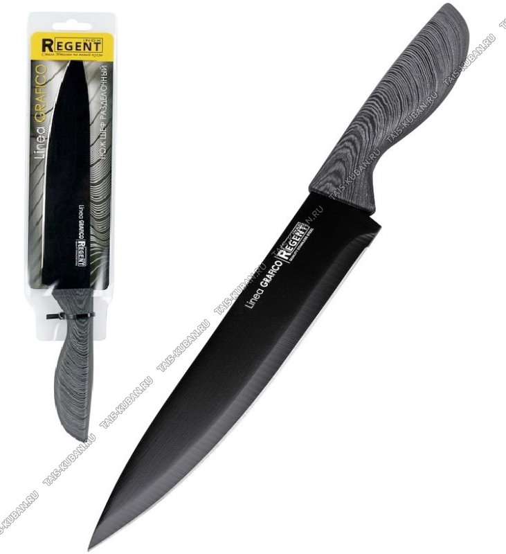 лезвие нержавеющая сталь 3Сr13,пластиковая прорезиненная ручка "дерево",черный/графит,блистер,Regent