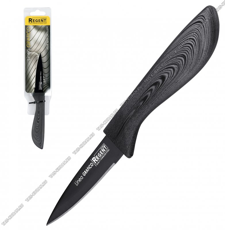 лезвие нержавеющая сталь 3Сr13,пластиковая прорезиненная ручка "дерево",черный/графит,блистер,Regent