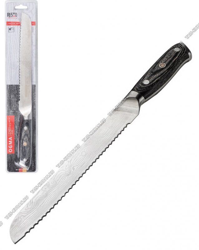 Ogma Нож д/хлеба L19см,лезв гравир.п/дамасскую сталь 5CR15MOV,литая руч с дерев.встав,блистер (12)