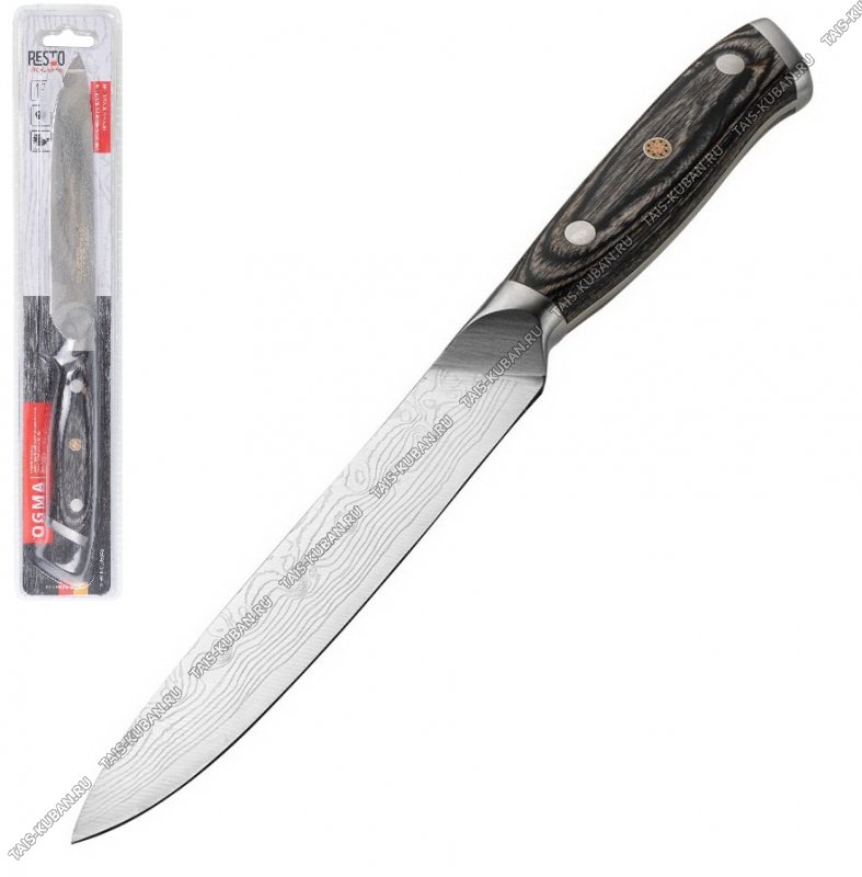 Ogma Нож универсал L13см,лезв гравир.п/дамасскую сталь 5CR15MOV,литая руч с дерев.встав,блистер (12)