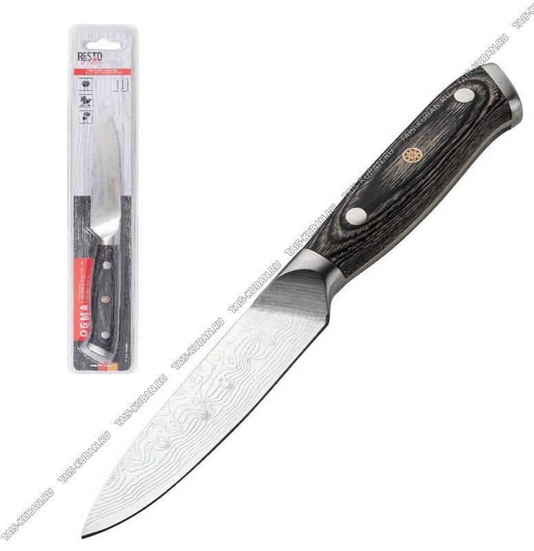 Ogma Нож д/овощей L10см,лезв гравир.п/дамасскую сталь 5CR15MOV,литая руч с дерев.встав,блистер (12)