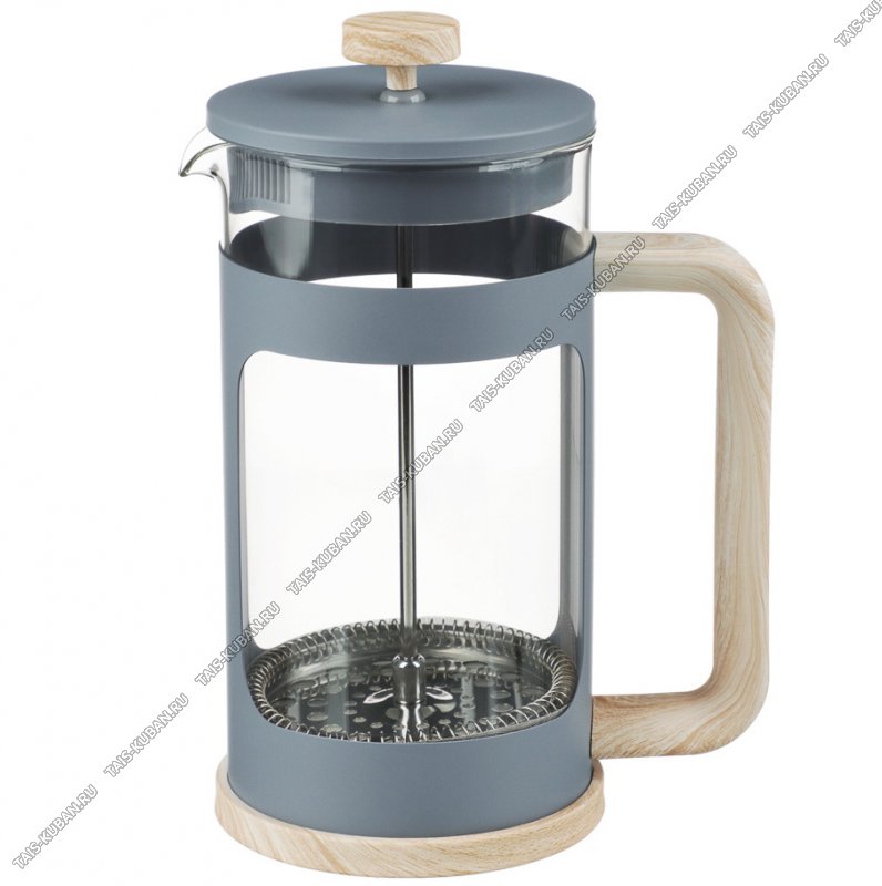 нержавеющий поршень,ручка "дерево",цвет серо-голубой,подарочная упаковка,Satoshi
