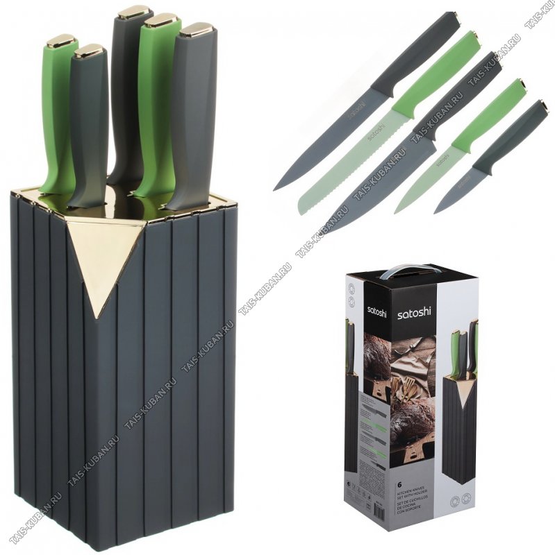 (шеф-нож 20см/для хлеба 19см/универсальный 13см и 15см/для овощей 9см) цветное нержавеющее лезвие,пластиковая ручка,зеленый,подарочная упаковка,Satoshi