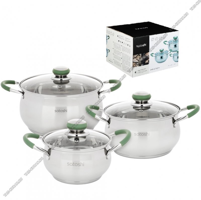форма сфера,индукционное капсульное дно,ручки-дуги полые металл/силикон оливковый,стеклянная крышка ручка-кнопка металл/силикон оливковый,толщина стенок /дна 0,5/2,5мм,матовая/зеркальная полировка,подарочная упаковка,Satoshi