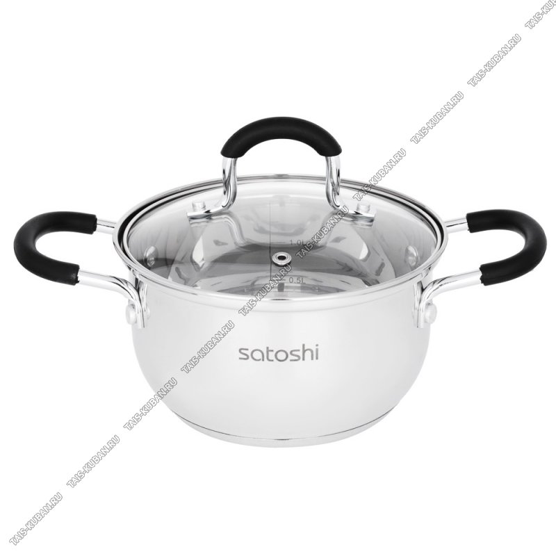 форма цилиндр,индукционное капсульное дно,ручки-дуги цельные металл/силикон черный,стеклянная крышка ручка-дуга цельная металл/силикон черный,толщина стенки/дна 0,5/3,0мм,зеркальная полировка,подарочная упаковка,Satoshi