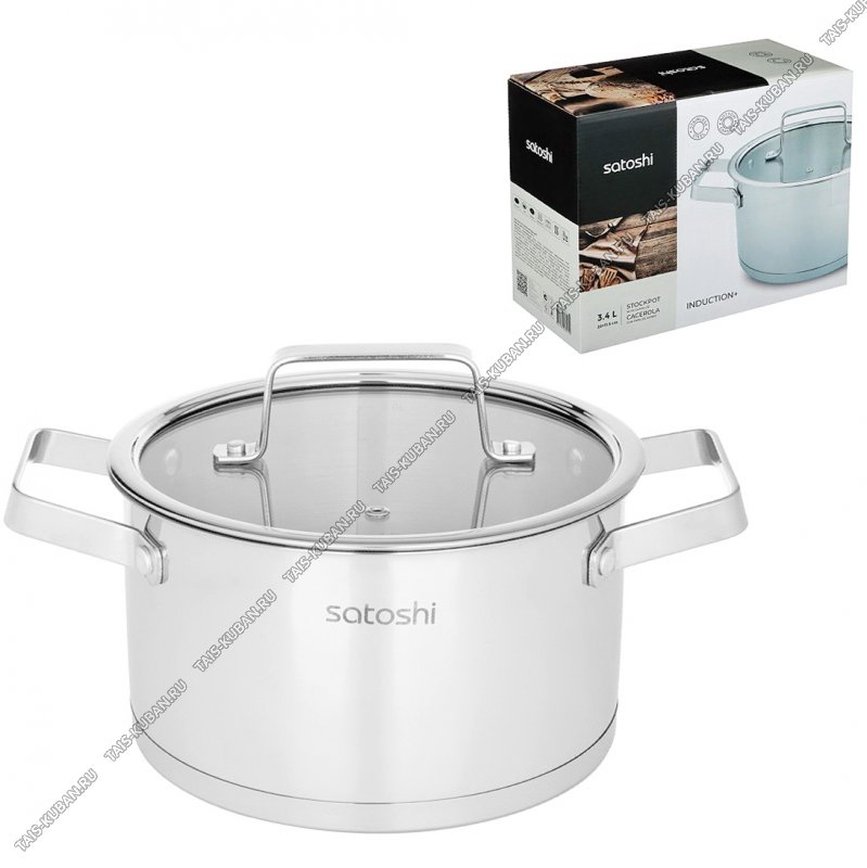 Chateau Кастрюля 3,4л d20см,ф.цилиндр,индукц.капсул.дно,ручки-скобы цельные,стекл.крыш ручка-скоба цельная,толщ.стен/дна 0,4/3мм,матов,п/у (6)