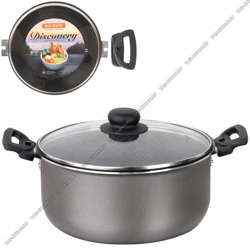 "Discovery" Кастрюля 4,5л,2съемн.пласт.ручк,графит/внутр.рис "соты",стеклян.крыш,толщ.стен.и дна 2,5мм