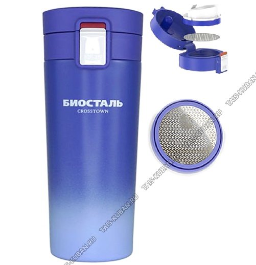 Термокружка (нерж) 0,4л "БИОсталь" лазурн,съемн.нерж.фильтр,крыш.с кнопк-предохранит