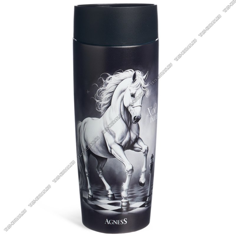 Термокружка (нерж) 0,36л "Agness/Ход Конем" черный/белый (24)