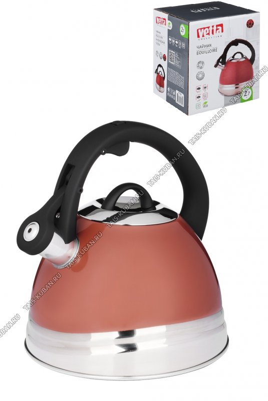 Чайник нерж 2,7л терракот,свист,индукц.капсул.дно,ручка бакел.черн.с кнопк.д/открыв,зеркальн."волна"/матов,п/у (12)