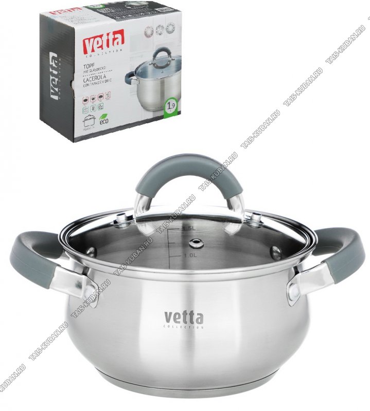 Vena Кастрюля 1,9л d16см,ф.груша,индукц.капсул.дно,ручки-дуги полые металл/силикон серый,стекл крыш рука-дуга полая металл/силикон серый,матов,п/у (12)