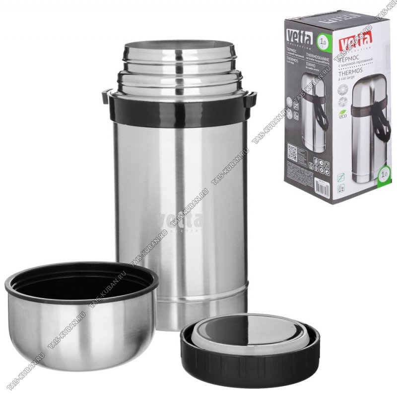 Термос (суповой) нерж 1,0л широк.горло,крыш-чашка,ручк-ремешок,п/у (12)