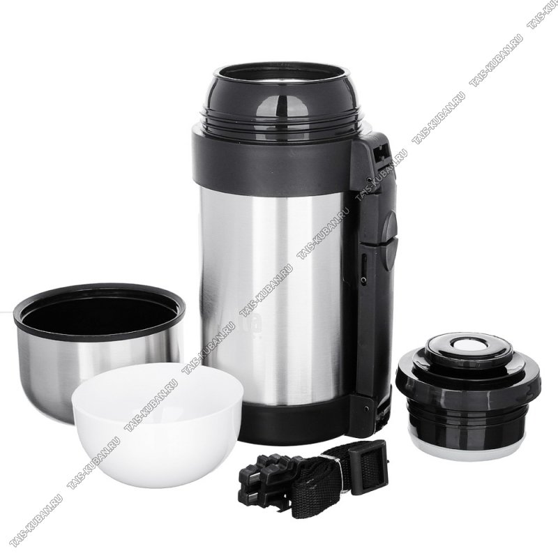 Термос (нерж) "Туристический" 1,0л широк.горло,винт пробк-кнопка,крыш-чашка 2шт,ручк-ремешок д/переноса,п/у (12)