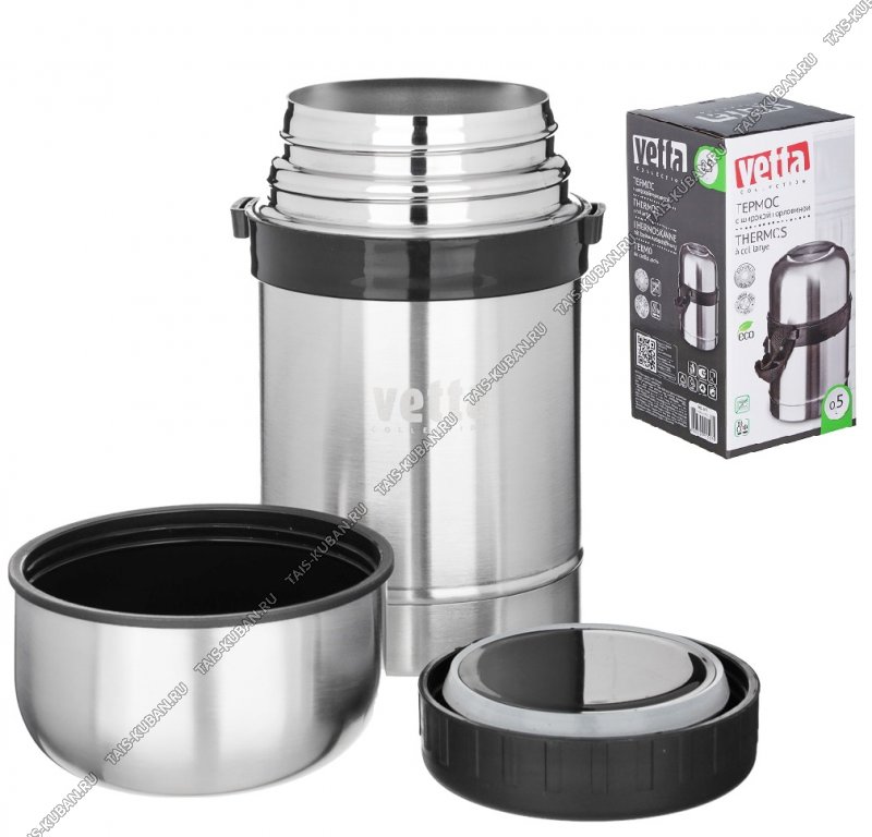 Термос (суповой) нерж 0,5л широк.горло,крыш-чашка,ручк-ремешок,п/у (12)