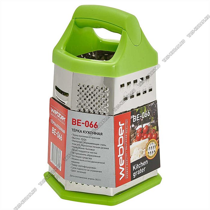 Терка 6-ти гранная h20см, нержавеюшая сталь,зеленая пластиковая ручка,нескользящее дно (12)