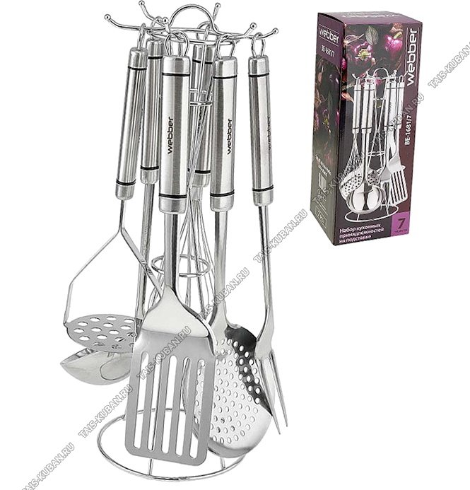 Кухонный набор 6предметов на подставке "Moderno" (половник,лопатка с прорезями,шумовка,вилка,картофелемялка,венчик д/взбивания) (12)