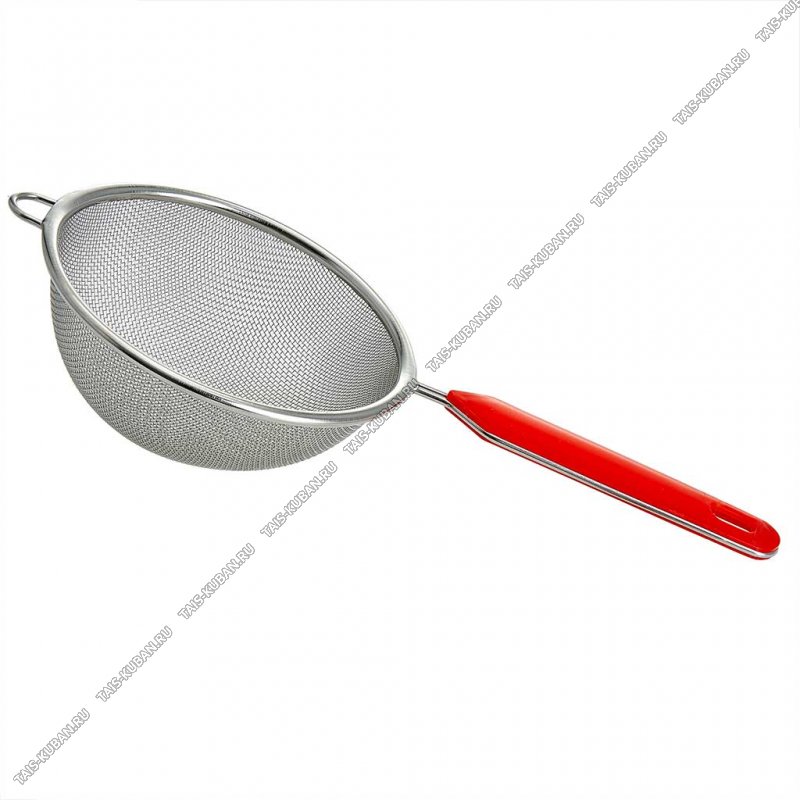 Сито RED d12см,пластиковая ручка, дополнительно ушко 2шт,нержавеющая сталь (288)