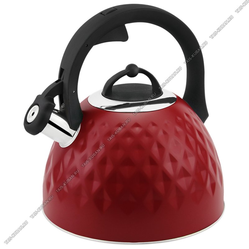 Чайник нерж 3,0л красн,свист,индукц.капсул.дно,рельефн."ромбы",ручка бакел.сливочн.с кнопк.д/отерыван,матов,п/у (6)