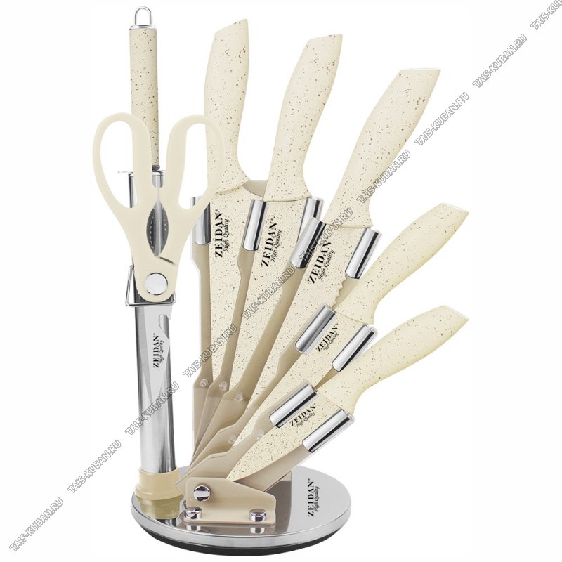 Н-р ножей 7пр на складн.подстав,бежев (поварск 20/раздел 20/универсал 12,5/д/овощей 9/нож д/хлеба 20см,мусат/ножницы) толщ.лезв 1,5мм,п/у (6)