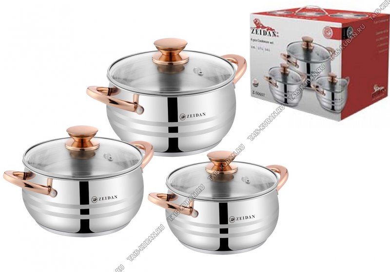 стеклянные крышки,3-х слойное капсульное индукционное дно,металлические ручки "золото",комбинированная полировка,подарочная упаковка,Zeidan