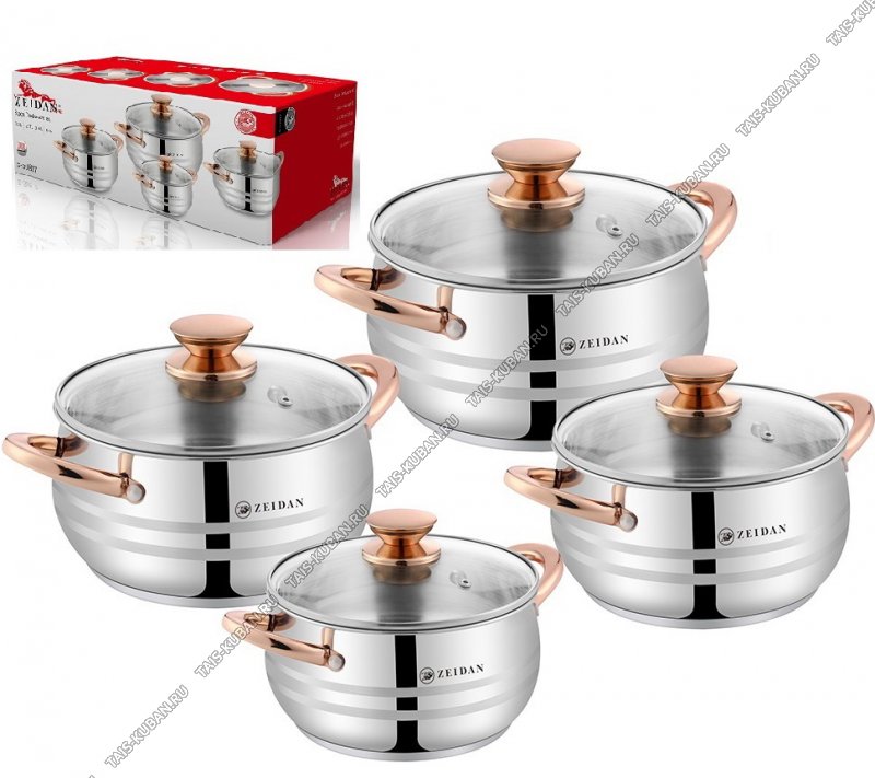 форма бочка,стеклянные крышки,3-х слойное капсульное индукционное дно,металлические ручки "золото",комбинированная полировка,подарочная упаковка,Zeidan