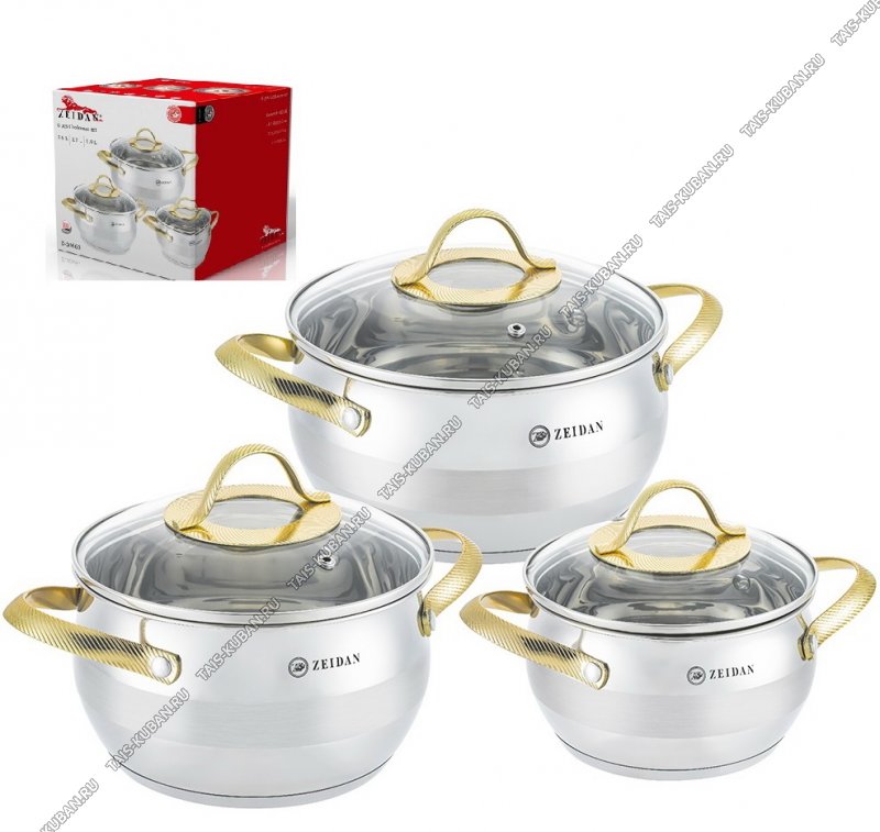 НАБОР Кастрюль "Голди" 3шт (1,9/2,7/3,6л d16/18/20см) (4)