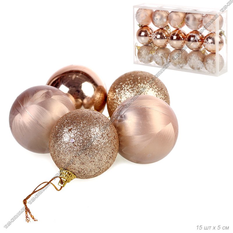 Ёлочный шар н-р 15шт d5см, бронза Ёлочный шар н-р 15шт d5см, бронза "Ассорти" пластик п/у (96)