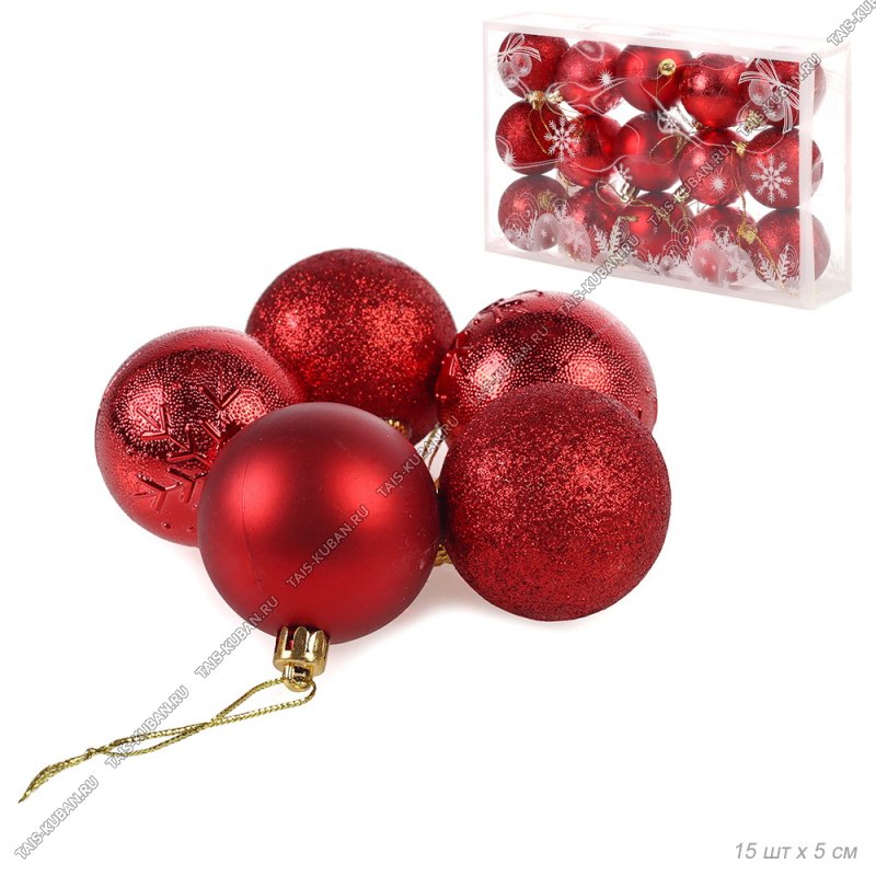 Ёлочный шар н-р 15шт d5см, красные "Ассорти" пластик п/у (96)