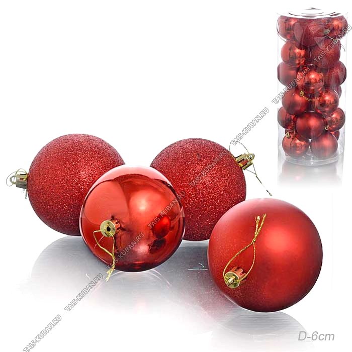 Ёлочный шар н-р 20шт d6см, красные Ёлочный шар н-р 20шт d6см, красные "Ассорти" пластик п/у (30)