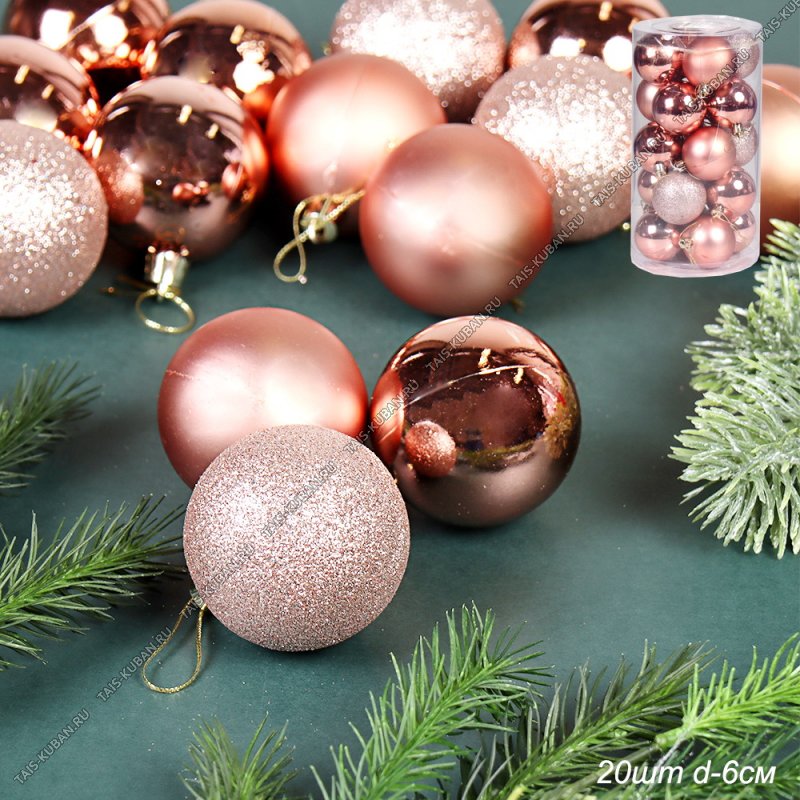Ёлочный шар н-р 20шт d6см, пудра Ёлочный шар н-р 20шт d6см, пудра "Ассорти" пластик п/у (30)