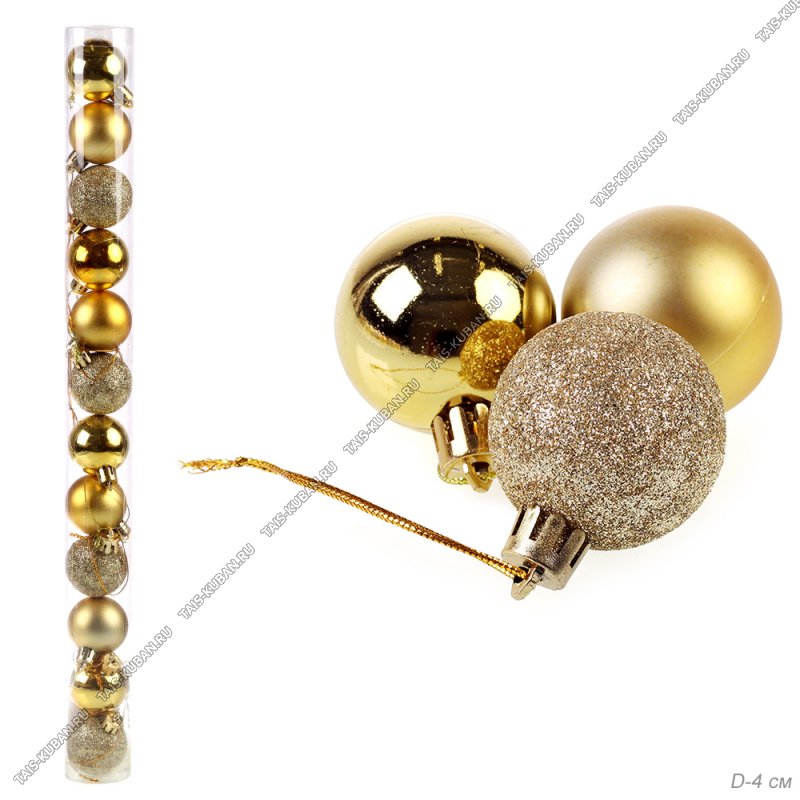 Ёлочный шар н-р 12шт d4см золото "Ассорти" пластик п/у (192)