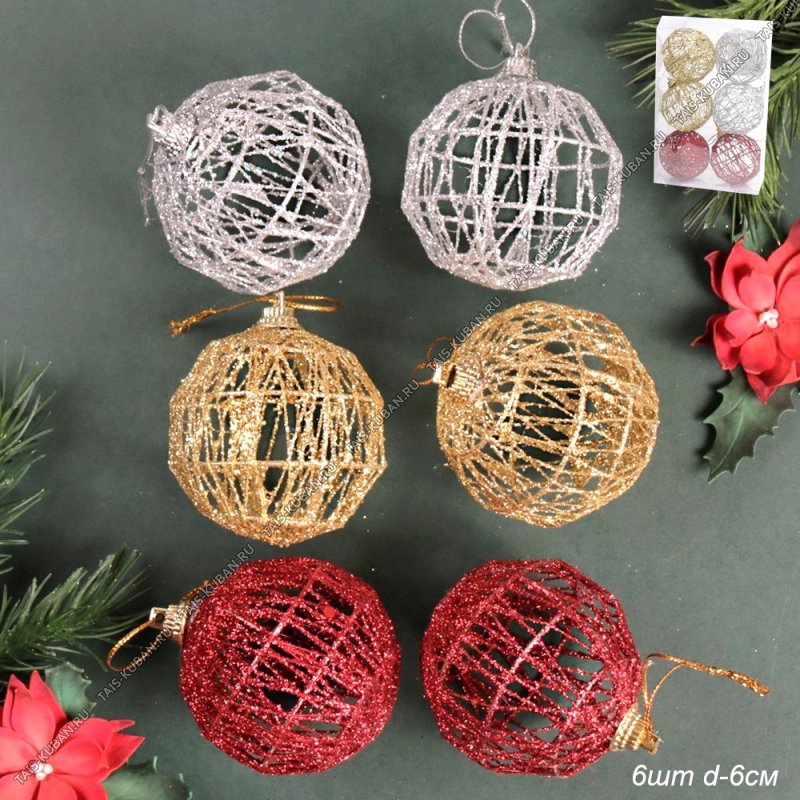 Ёлочный шар н-р  6шт d6см зелено-красные Ёлочный шар н-р 6шт d6см зелено-красные "Елочка" пластик п/у (120)